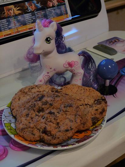Là j’avais fait une mélange de 3 chocolats pâtissiers, au lait, au lait/caramel et noir. De toutes façons, les pépites qu’on vend toutes faites sont dégueux et coutent un bras, vaut mieux prendre son couteau et tailler dans la tablette comme une barbare. C’est vrai qu’on fait des « miettes » de chocolat au couteau, mais elles ne sont pas perdues, versées sur un café chaud, ou sur le dessus de la tartine beurrée, par exemple…