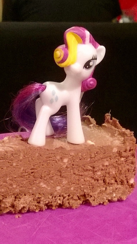 Bien m’en a pris, ça déboîte !! La brousse est juste acidulée comme il faut pour contrebalancer les quelques 450 g de chocolat (oui, c’est moins impressionnant quand on marque 225 g, puis 225 g. mais les maths sont implacables, ça fait presque une livre de chocolat dans ce gâteau), c’est frais et pas écœurant du tout, le p’tit goût de Bailey’s fait claper les lèvres quand on goûte, c’est un vrai feckin’ good oirish cake