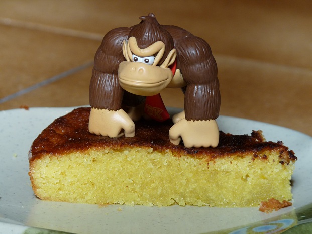 La préparation a pris moins de temps que le préchauffage du four, n’a sali qu’un saladier et une fourchette, la cuisson est rapide, ça embauche l’appart … Un pur COTY (Cake Of The Year, et non pas un hommage au président favori d’OSS 117 ).