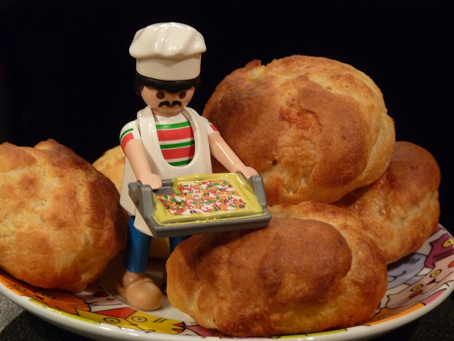 Avec deux cuillères (ou une poche à douille), former des boules de la taille d’une noix, les déposer sur une plaque recouverte de papier cuisson, et au four pour 18/20 minutes (elles doivent être bien gonflées et dorées).