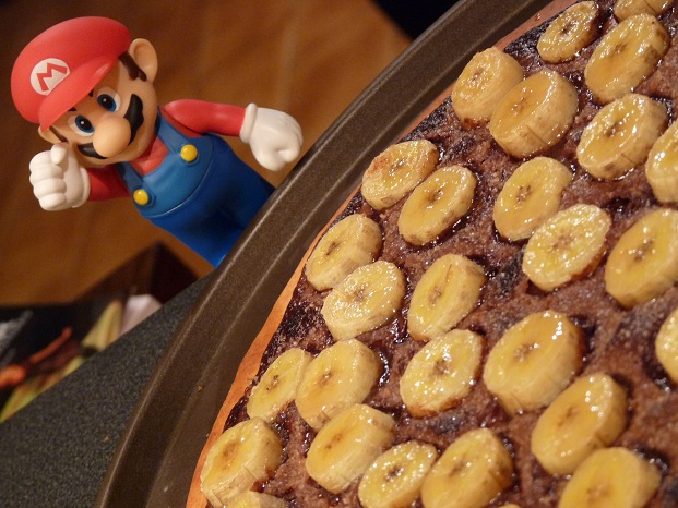 Badigeonner de Nutella (une bonne couche, sinon ça sera sec) et répartir les bananes en tranches.