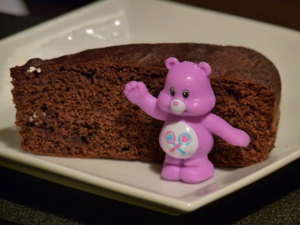 Attention, gâteau définitivement pour adultes, très peu sucré (je sais qu’il y a 350 g. de sucre, mais la vie de ma mère ça se sent pas), voire un peu amer(« – Non?? – Siii ! »), très costaud en goût, faut des papilles apprivoisées pour apprécier. Une allitération en « p » pour dire que « putain c’est bon !!! »