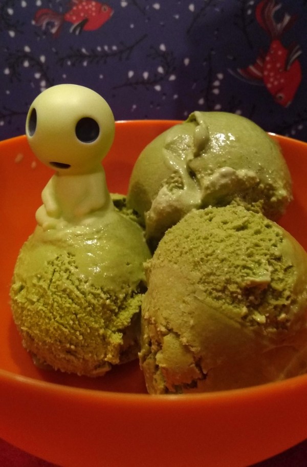 A priori, on peut le faire sans sorbetière, en allant remuer le mélanger à H+1, H+2 et genre H+4 dans le congélo. Mais sérieusement si vous aimez les glaces (et qu’il vous reste un peu de place dans les placards, mmfff), une sorbetière c’est un très bon achat, très vite rentabilisé. Surtout quand on est nostalgique du Japon (et de la cuisine, bon sang de bonsoir, qu’est-ce qu’on mange biiiiiieeeennn au Japon), parce que la glace au thé vert très peu sucrée et toute onctueuse comme là-bas, dans le commerce j’en ai pas encore trouvé !