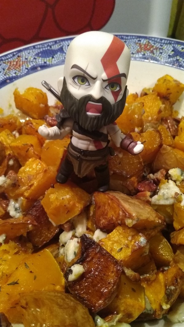 C’est juste trop bon. Si le Roquefort vous intimide, essayez quand même, ça passe tout seul en contraste avec la douceur du Butternut, ça commence juste à fondre quand on le mange, la pécan apporte de la texture et une p’tite amertume, c’est torride ! Bien sûr, chacun dose le Roquefort et les pécan selon son goût.