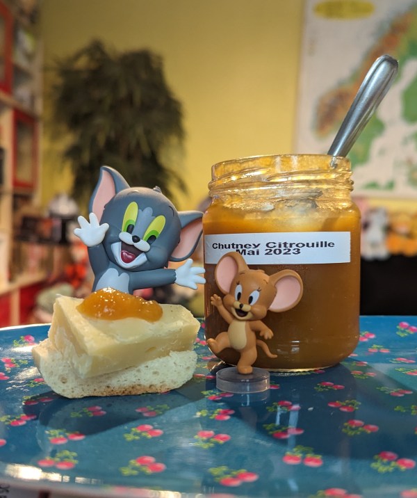 On a goûté ce chutney (ou approchant) à Lisbonne avec de la charcuterie et du fromage, et vu que j’avais DEUX KILOS de citrouille d’Halloween au frigo, j’ai fureté en ligne et fais un mix de ce que je trouvais et voilà ! Le résultat est très sympa, et vu que sur les épices j’y suis un peu allée à la ouane again, je me suis dit qu’il fallait mieux écrire ce que j’avais mis avant d’oublier ^^