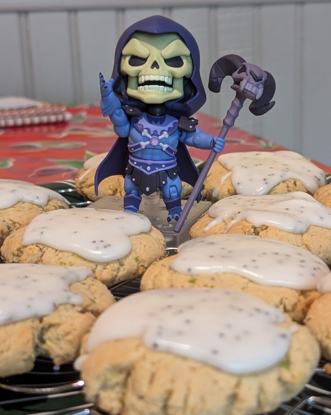 Une fois tiédis, décorer avec un glaçage obtenu avec du sucre glace et le jus du citron (mélanger jusqu’à avoir une texture épaisse, pour recouvrir le cookie mais sans dégouliner partout, enfin vous voyez, hein), plus quelques graines de pavot, plus pour le look que pour le goût, on va pas se mentir.
