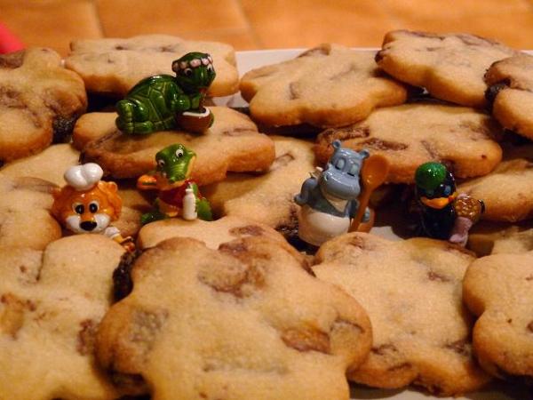 Autant d’habitude je fais des pépites assez costaudes, là, vu que les cookies sont au final assez fins, j’ai préféré taper sur du petit format. On peut bien évidemment ajouter des noix, des noisettes, des amandes à l’envie !