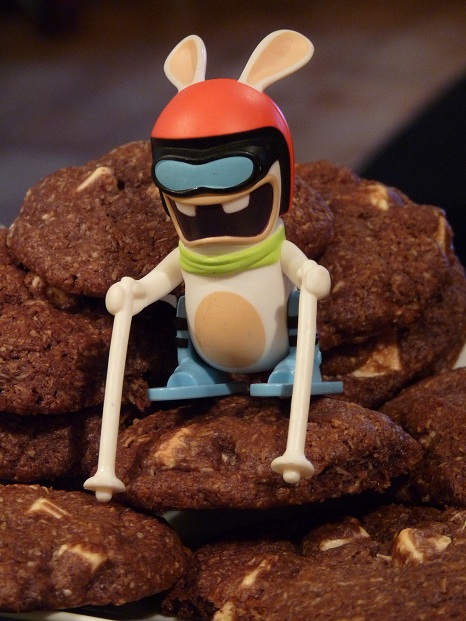 Sur une feuille de papier cuisson, faire de petits tas de la taille d’une grosse noix à l’aide de deux cuillères à café et enfourner pour 25/30 minutes, jusqu’à ce qu’ils soient dorés, mais pas trop, sinon, ça vire au parpaing en refroidissant. Attention, ils ne s’étalent pas du tout, donc ils auront la même forme en entrant dans le four qu’en en sortant.